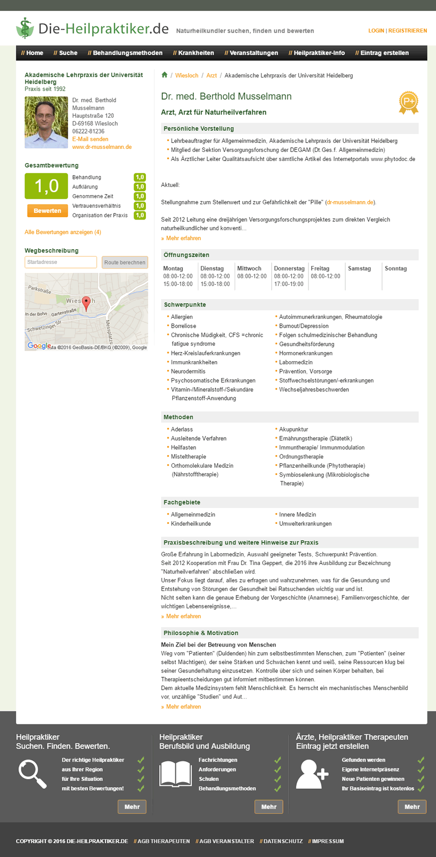 Konzeption und Umsetzung eines Eintragsportals für Therapeuten und Ärzte für Naturheilverfahren